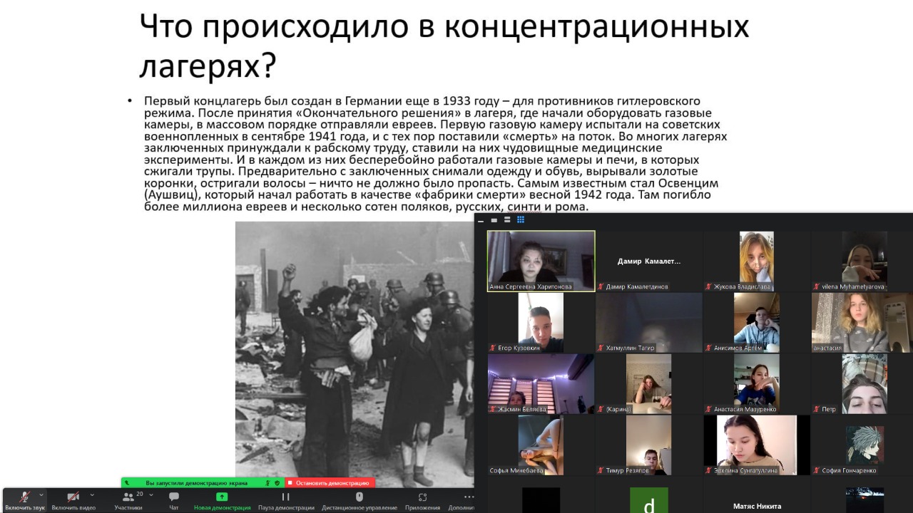 В средних и старших классах были проведены классные часы, посвященные Дню памяти жертв Холокоста. Целью проведенных мероприятий было: