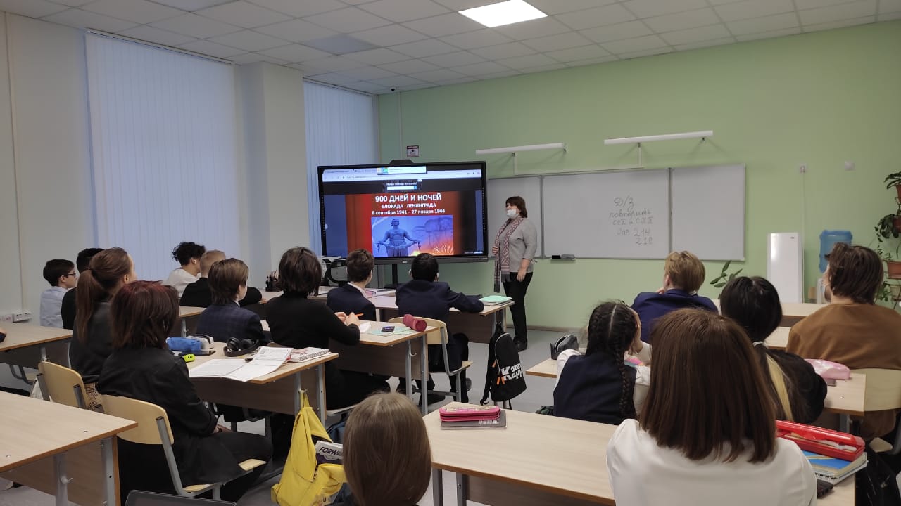 Классные руководители рассказывали о непростой судьбе ленинградцев. В начальных классах учителя рассказали о жизни школьницы Тани Савичевой, которая росла в большой и дружной семье. Дети затаив дыхание, слушали рассказ о своей ровеснице, в жизнь которой ворвалась война, которая мужественно и стойко держалась до последнего вздоха, помогала, и поддерживала всех, кто оказывался рядом.