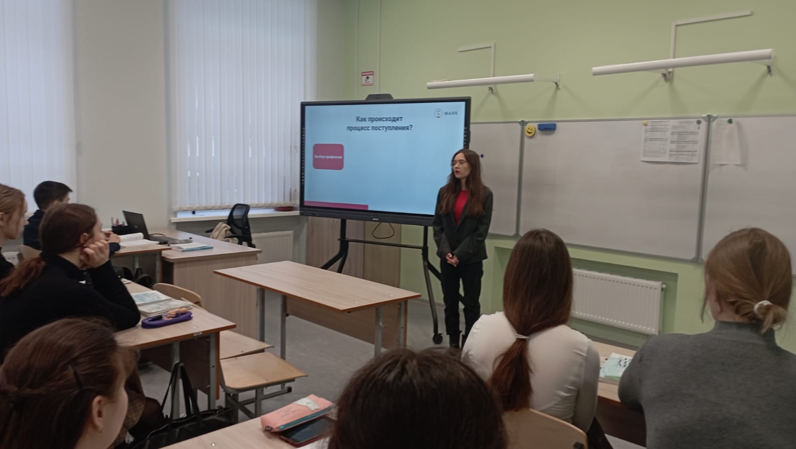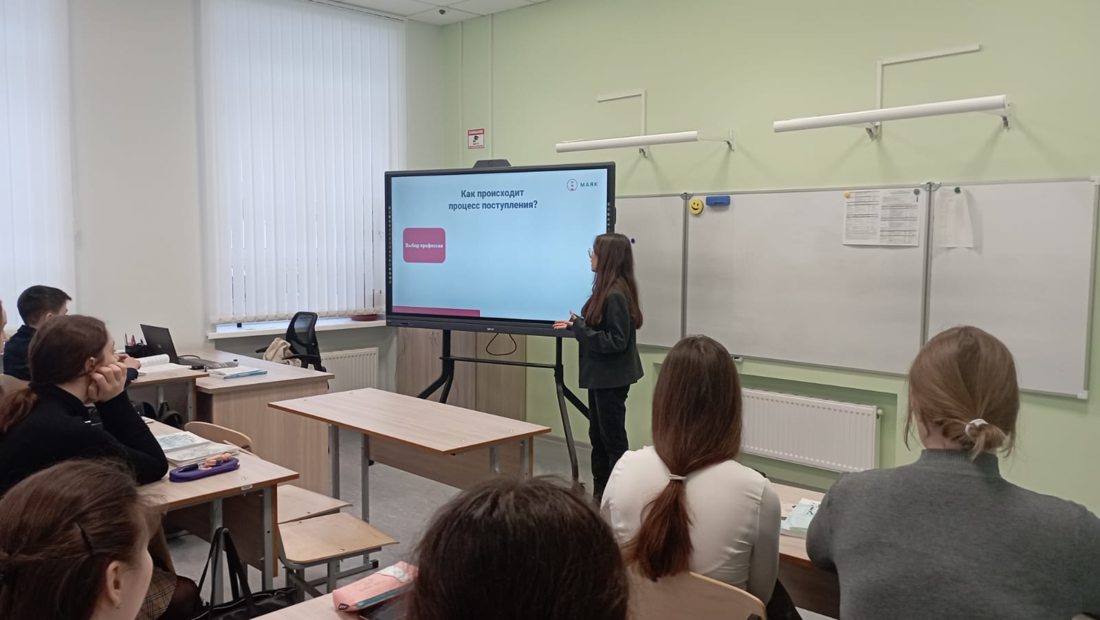 21 февраля образовательный центр "Маяк" провёл в 10А классе мастер-класс по профориентации. Представители центра приготовили для десятиклассников выступление на очень актуальную тему: " Как поступить на бюджет". Мастер-класс был проведён в формате диалога, дети задавали вопросы и получали ответы.