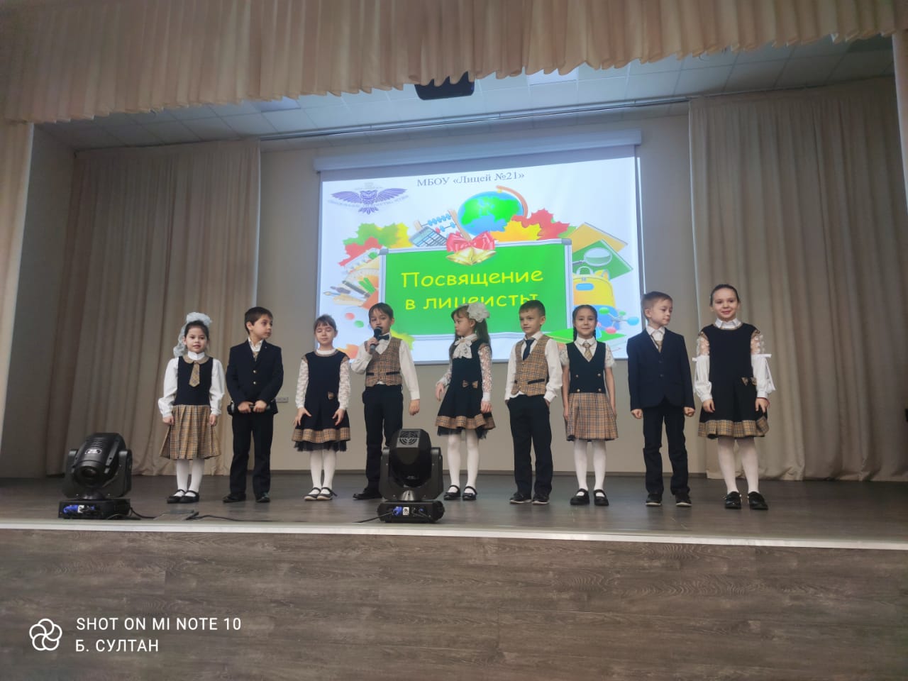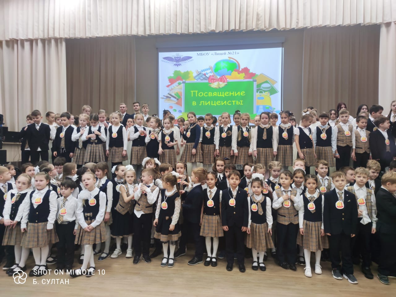 21 февраля в МБОУ "Лицей №21" состоялось посвящение первоклассников в лицеисты. На мероприятии царила праздничная атмосфера. Ученики воодушевлённо и радостно слушали наставления и поздравления педагогов.