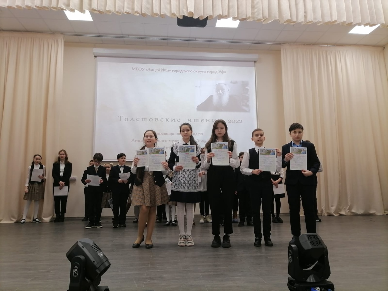Поздравляем Каюмову Амину, ученицу 5Б класса и Саттарову Лейлу, ученицу 6В класса, победителей в секции "Юный переводчик родной язык)". Они перевели рассказы Л. Толстого на башкирский язык.