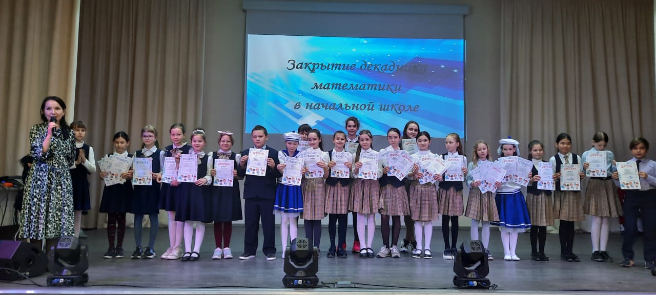 Также на закрытии благодарностями от лица администрации была отмечена добросовестная, творческая работа учителей начальных классов Муслимовой З.Ю., Юдахиной А.А., Мустафиной Т.Ю., Лихановой Е.Н., Нугумановой Г.У., Брагиной Е.Б., Муталлаповой З.Ф., Волиной О.В., Федоровой И.Г. под руководством куратора начальной школы, классного руководителя 2А класса Азаматовой Л.Х. в проведении предметной декады математики.