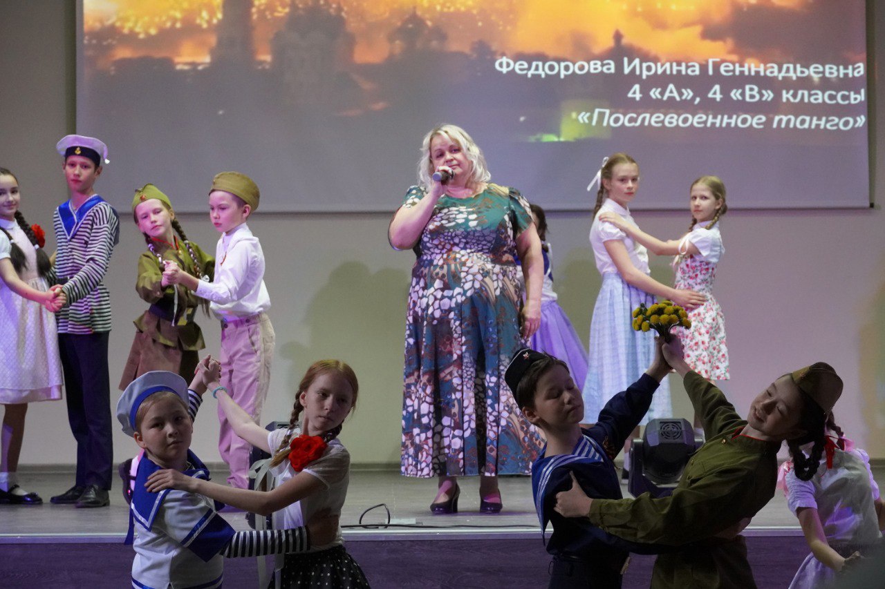 13 мая в торжественной и строгой обстановке в актовом зале прошел праздничный концерт. Все артисты были встречены зрителями с теплотой и радушием. Ученики и учителя подготовили выступления, посвященные памятной дате, вспомнили о героях того времени. Участники торжественного мероприятия услышали стихи и песни о ветеранах, матерях, проводивших детей на войну, о письмах с фронта. В ходе праздничного концерта звучали музыкальные произведения военных лет. Не обошлось и без танго, ритмы которого сразу напомнили о весне 1945 года.