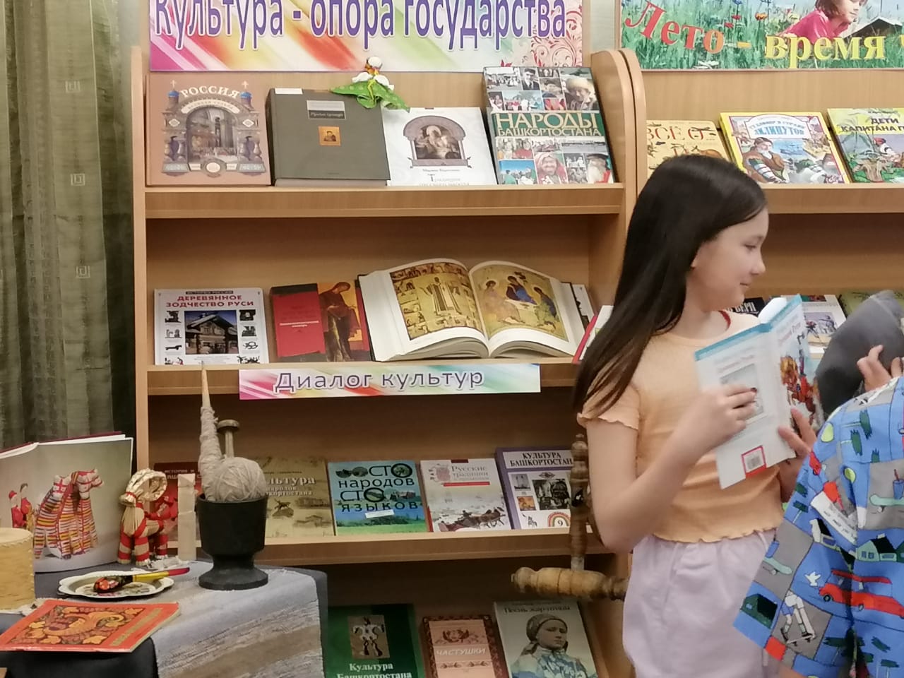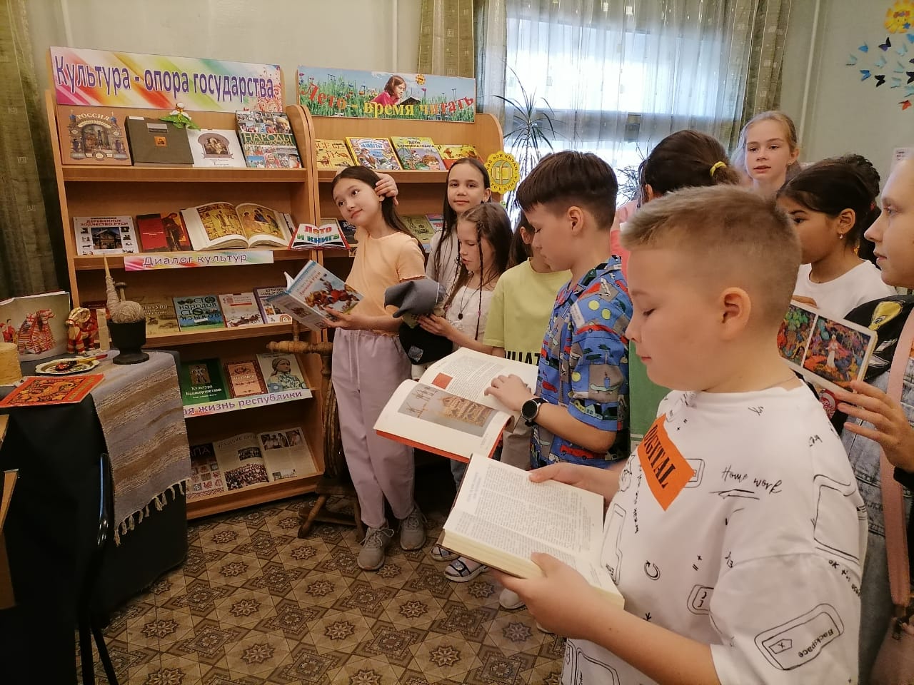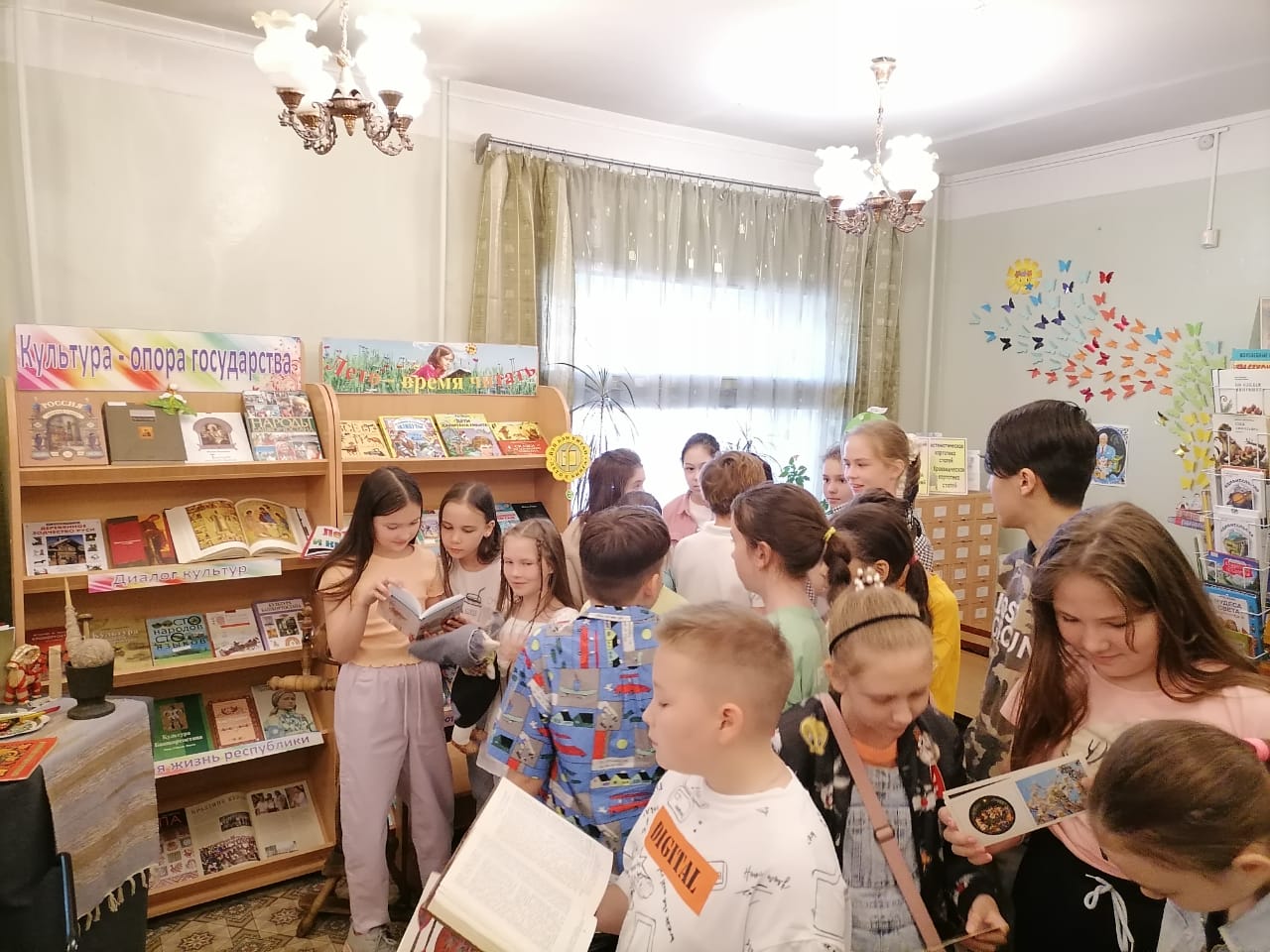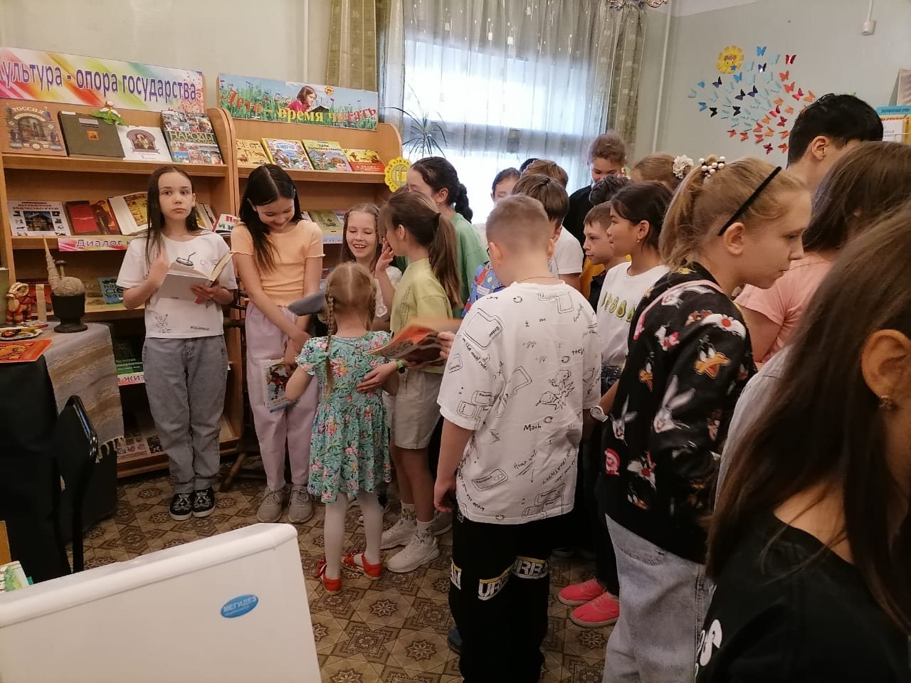 После актового зала дети направились в городскую модельная библиотеку №7, где приняли участие в акции «День русского языка». Сотрудниками библиотеки была представлена выставка книг русских писателей. Светлана Михайловна рассказала детям о том, что слово — удивительный дар, которым обладает только человек. В русском языке есть великое множество слов. Сколько их? На этот вопрос не может убедительно ответить ни один специалист, ни одна статистика. 200 тысяч русских слов собрал в своем толковом словаре В. И Даль. В словаре С.И. Ожегова — 57000 слов. В произведениях А.С. Пушкина было использовано 20000 слов.