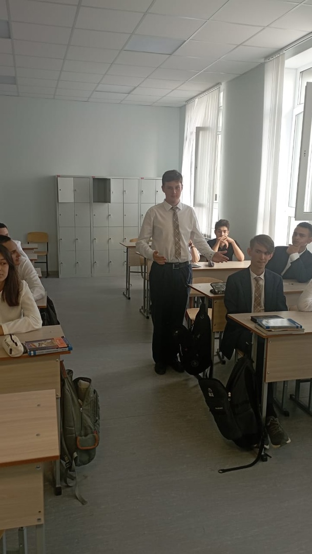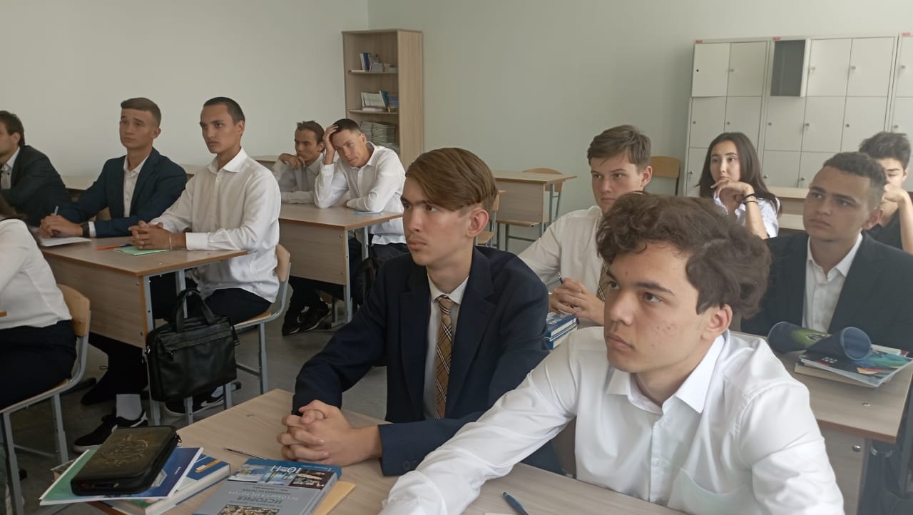 З сентября 1945 года - это День окончания Второй мировой войны. 2 сентября в 11Б классе провели урок с просмотром и обсуждением видео, в котором кандидат исторических наук Станислав Аманов отвечает на вопросы ведущего Ислама Шихшабекова. Интервью ребятам очень понравилось, так как оно сопровождалось интересными фактами и кадрами из видеоархива. После просмотра интервью была проведена беседа с учениками по интересующим их вопросам.