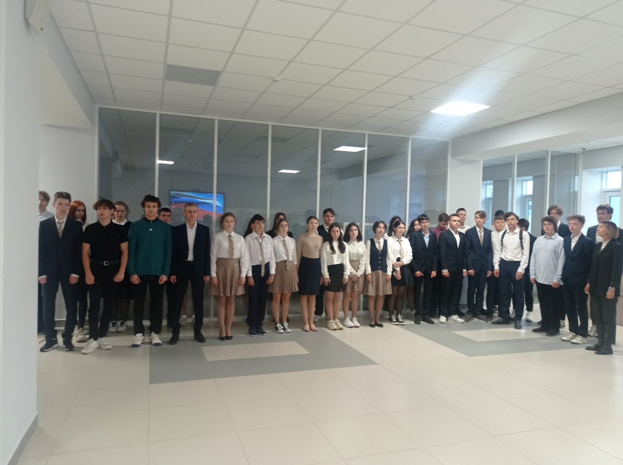 Перед тем, как начать разговор о важном в классе, учащиеся собрались в холле Лицея. Первое внеурочное занятие началось с поднятия Государственных флагов Российской Федерации и Республики Башкортостан, а также исполнения государственных гимнов.