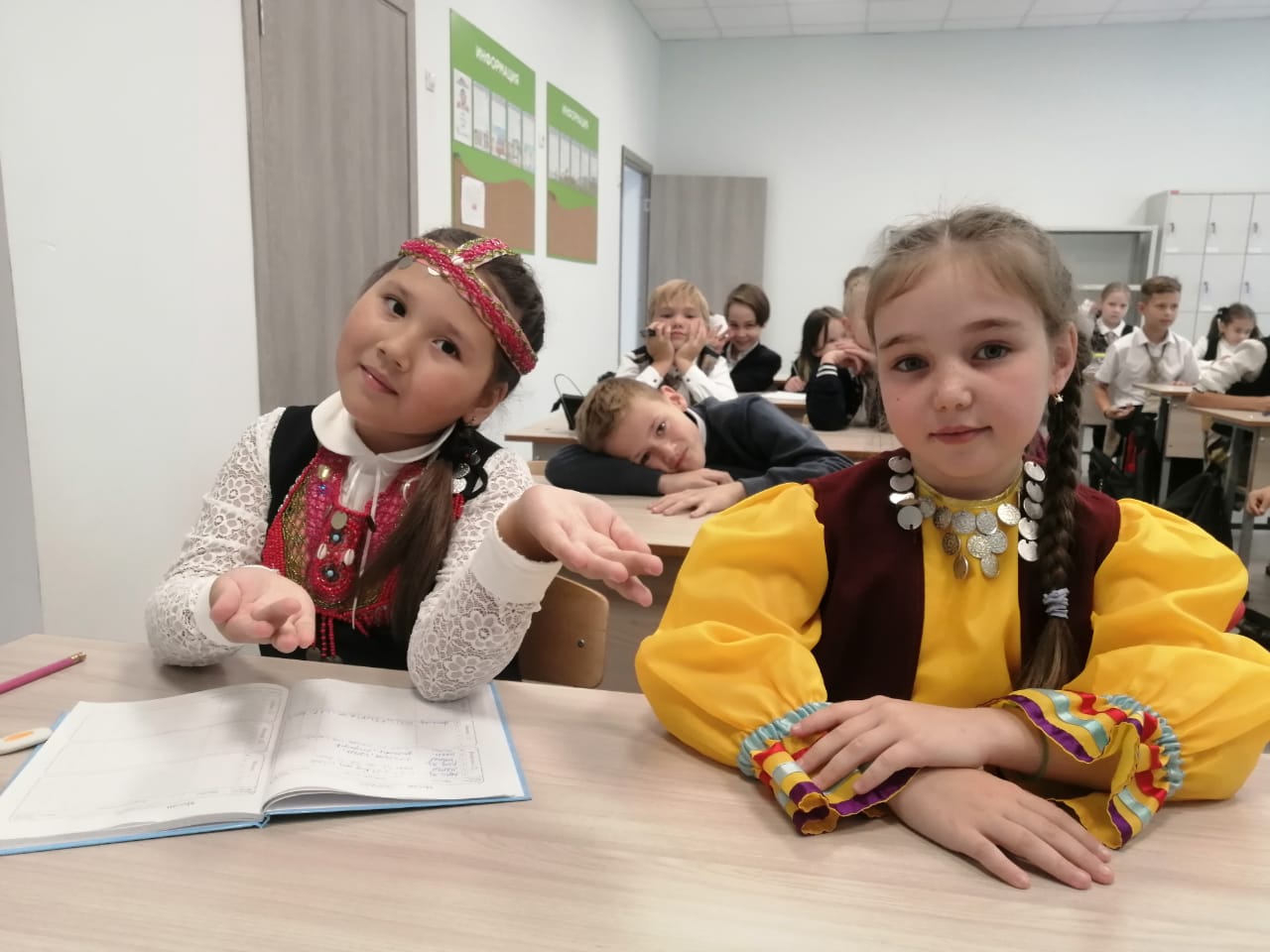 В этот день прошли классные часы, на которых учащиеся познакомились с особенностями национальных костюмов народов нашей Республики, изучили элементы костюмов, их характерные особенности, познакомились с историей появления национальных костюмов как одной из неотъемлемой части традиций народа. Многие ребята в этот день пришли в костюмах и украсили свою повседневную форму национальными элементами. На переменах учащиеся читали стихи, играли в национальные игры, слушали песни и рисовали традиционные башкирские костюмы.