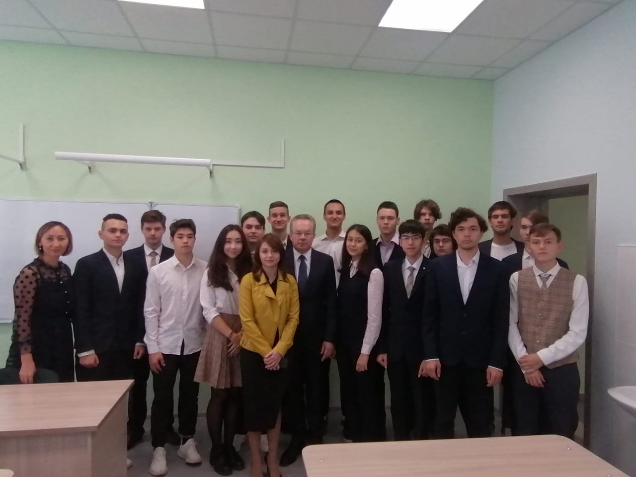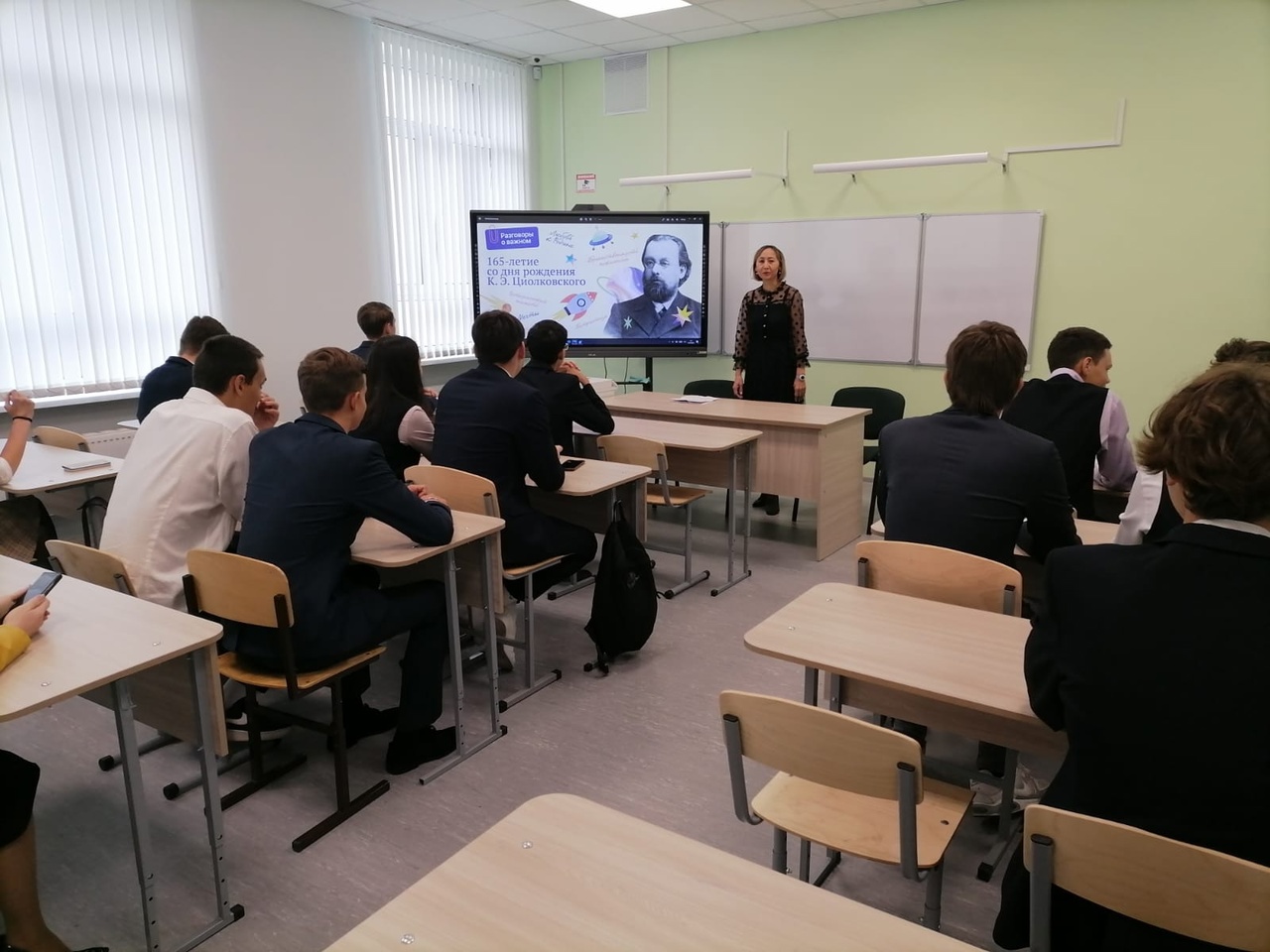 На мероприятии присутствовал почетный гость, Министр транспортного и дорожного хозяйства Республики Башкортостан А.В. Булушев. Александр Владимирович обратился к ребятам с приветствием, в котором напомнил о важности любви к своей Родине. Кроме того, гость посетил и классный час в 11Б классе, посвященный 165-летию К.Э. Циолковского. Ребята посмотрели информационный ролик о Константине Эдуардовиче и вместе с классными руководителями порассуждали о подвигах людей во имя науки. На уроке дети смогли расширить свои представления о важности изобретений и трудов Циолковского для развития космонавтики.