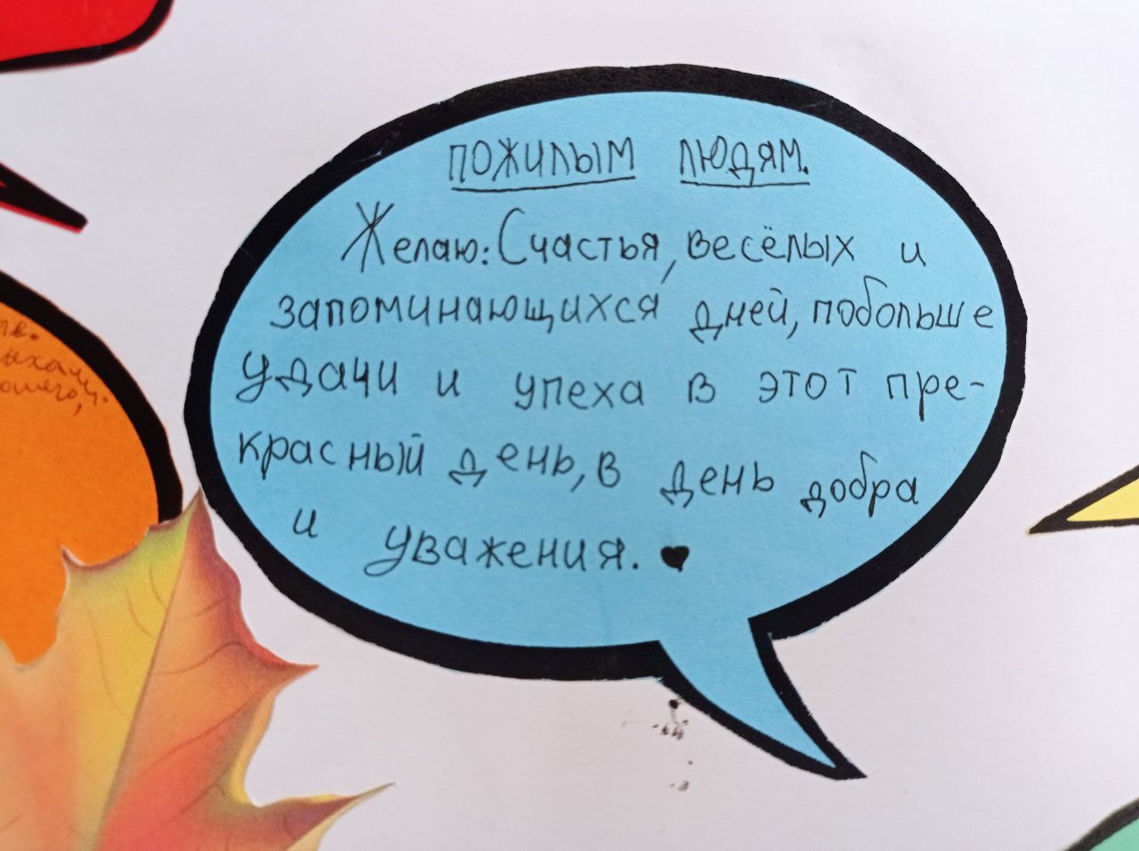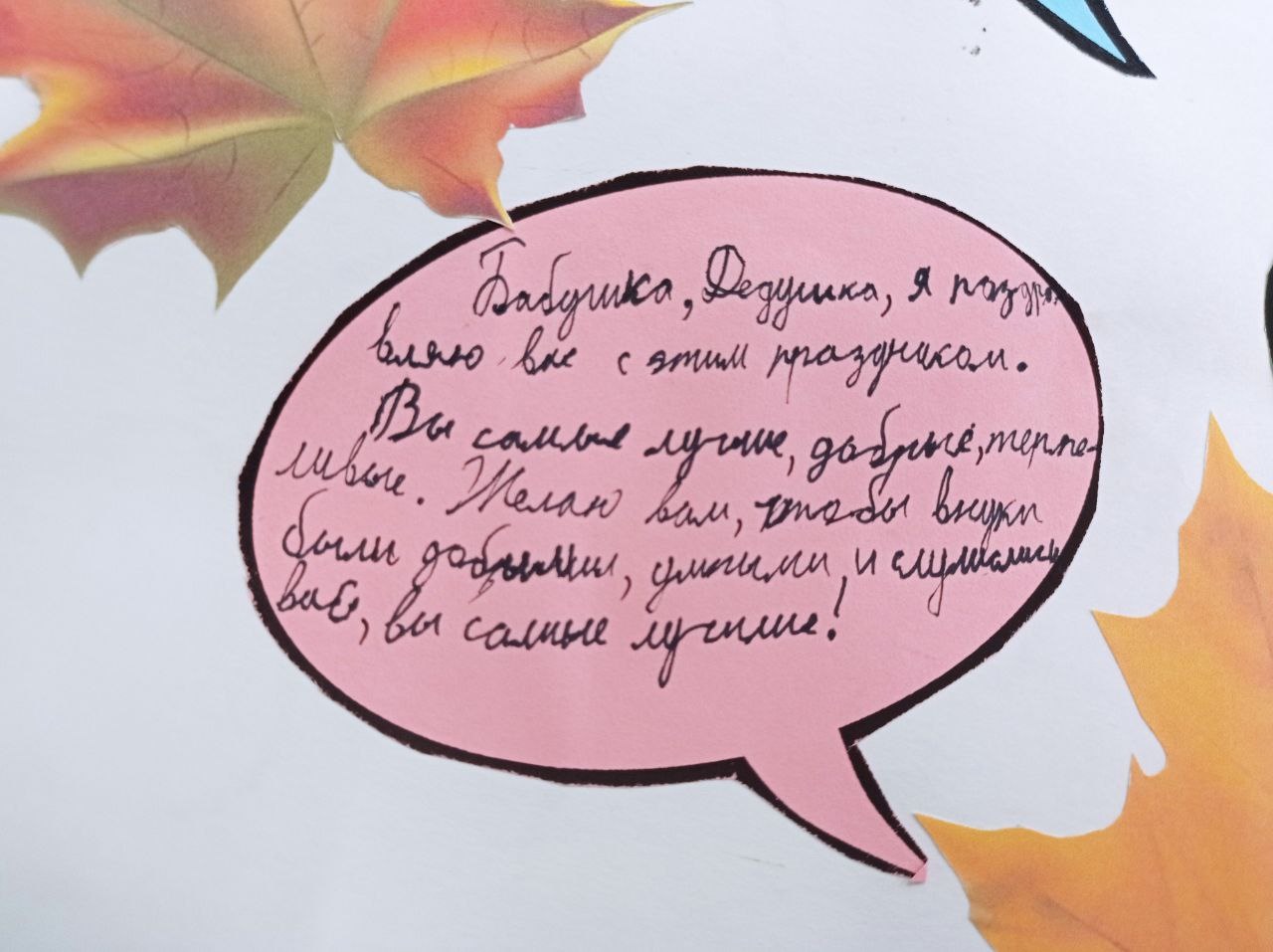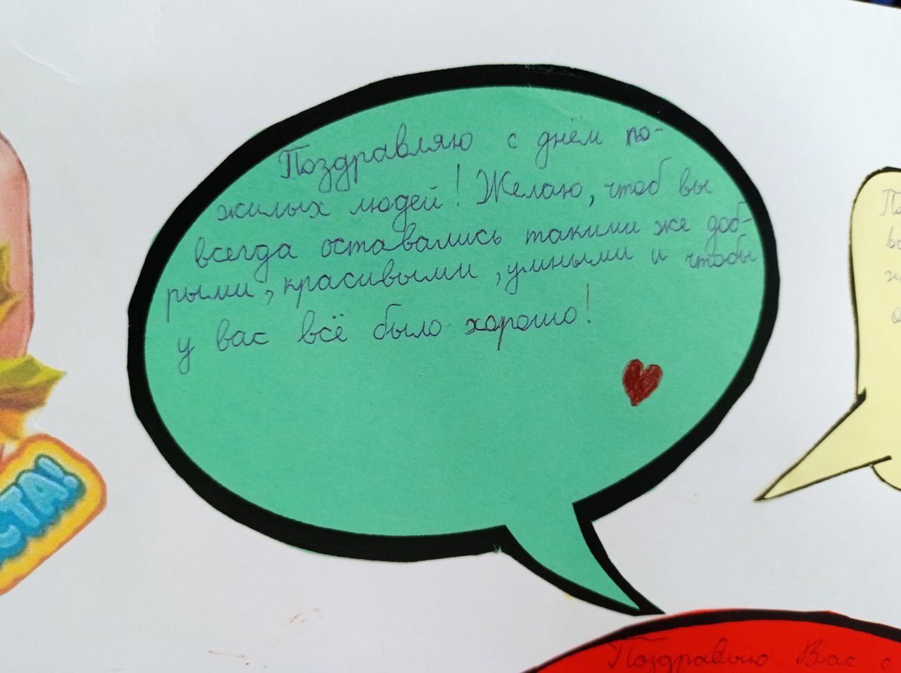 Для Вас, дорогие бабушки и дедушки, ученики 5А класса приготовили открытку. Пусть каждый будет одарен вниманием и пониманием родных, заботой и душевностью. Долгих вам лет жизни, здоровья и мира в душе!
