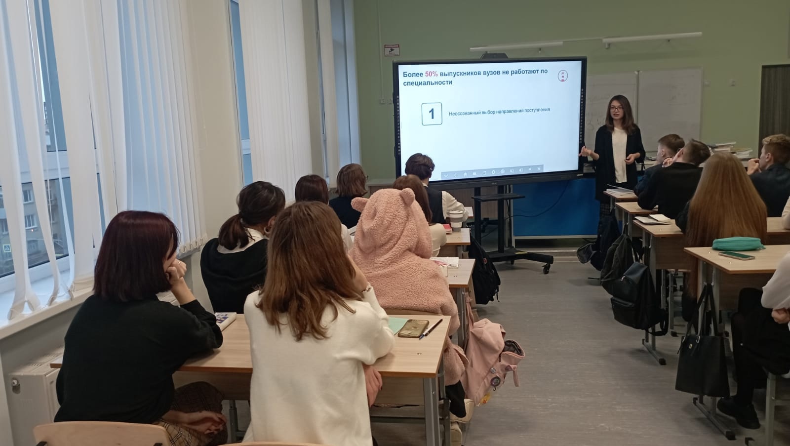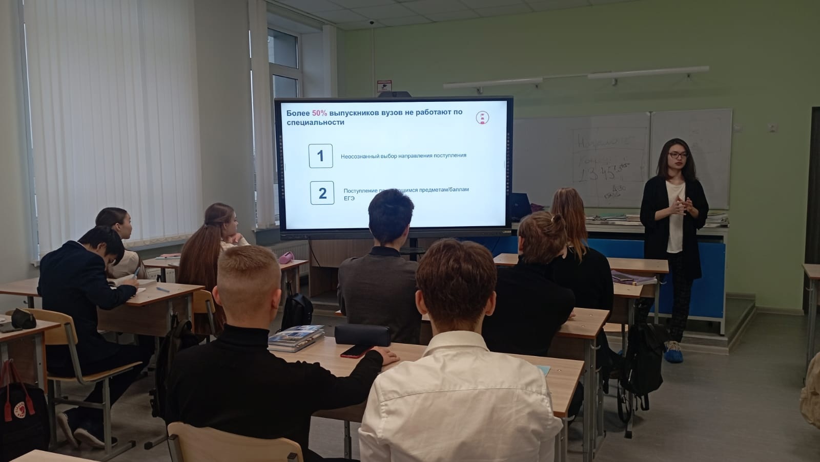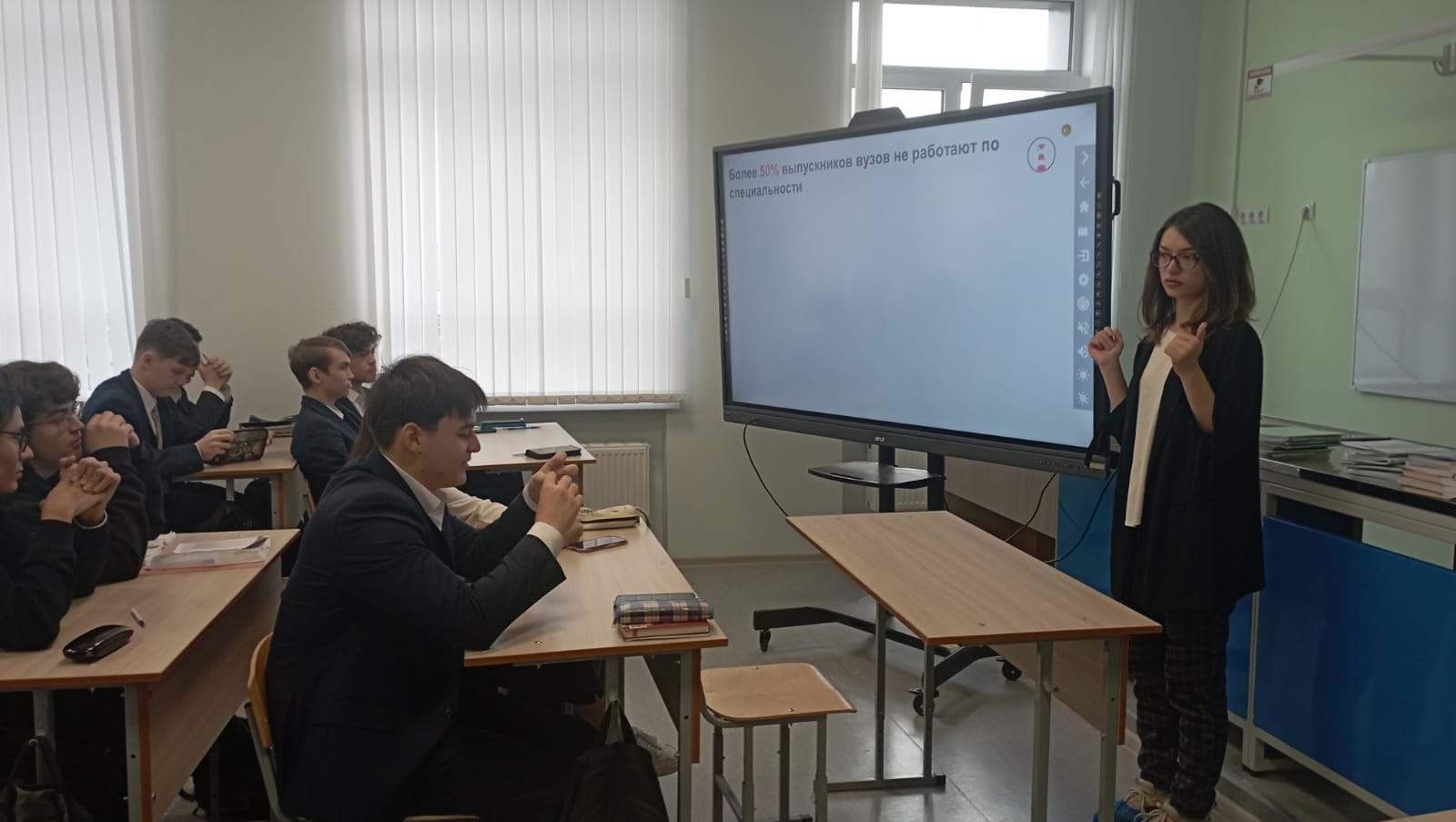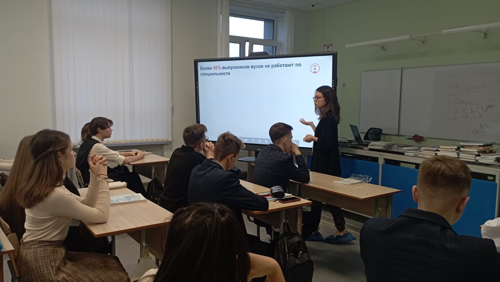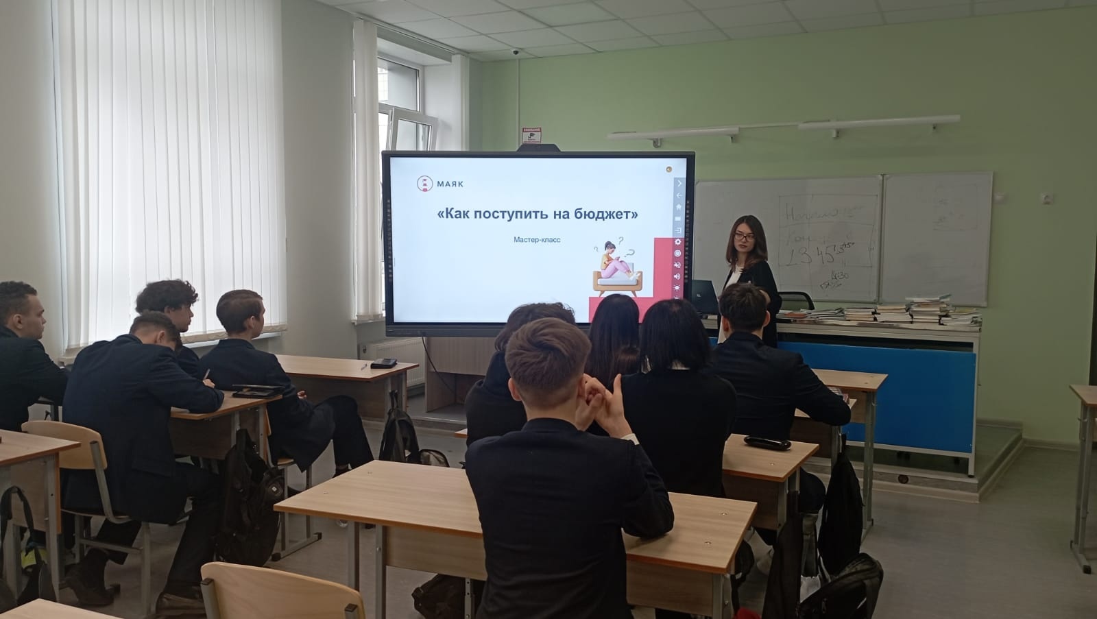 25.10.2022 специалист по профориентации Учебного центра "Маяк" провела мастер-классы в 11А, 11Б, 10А классах на тему "Как поступить на бюджет". Мастер-класс прошел в форме беседы, во время которой специалист рассказала ребятам о том, как поступить на бюджет после сдачи экзаменов.