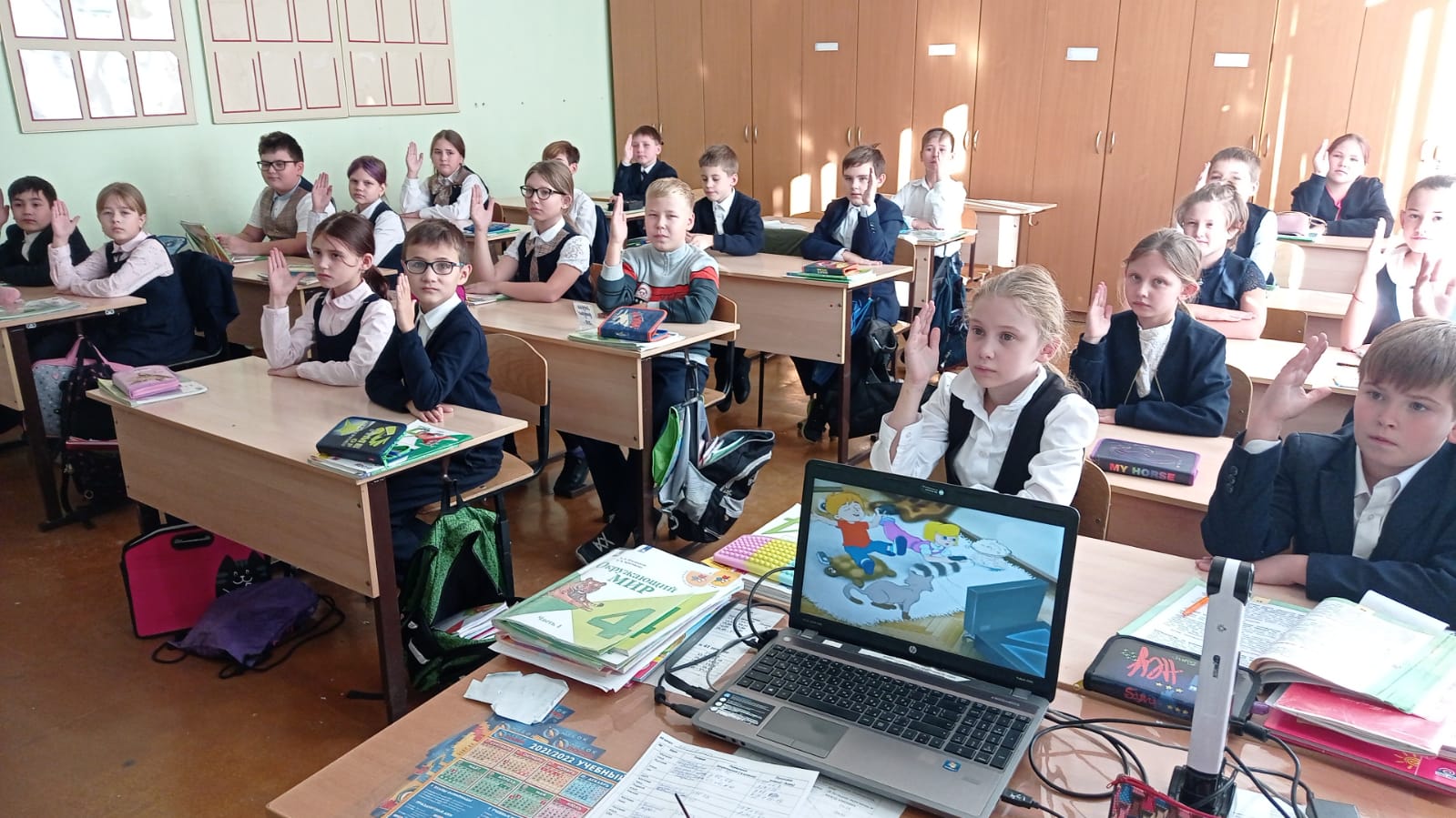 На уроках ребята узнали, что им на помощь в сложных и опасных ситуациях придут подготовленные специалисты, профессионалы, искренне любящие своё дело, умело применяющие специальную технику и оборудование. Однако, опасные ситуации могут возникнуть внезапно, а жизнь и здоровье людей будут зависеть от них самих. Поэтому очень важно, чтобы действия в ЧС были правильными. На уроке дети узнали, что такое средства индивидуальной защиты, как самим изготовить простейшее из них, ватномарлевую повязку. Правила пожарной безопасности и эвакуации. На протяжении всего урока ребята активно отвечали на вопросы, связанные с опасностями, подстерегающими их в жизни, как их избежать и уберечь других.