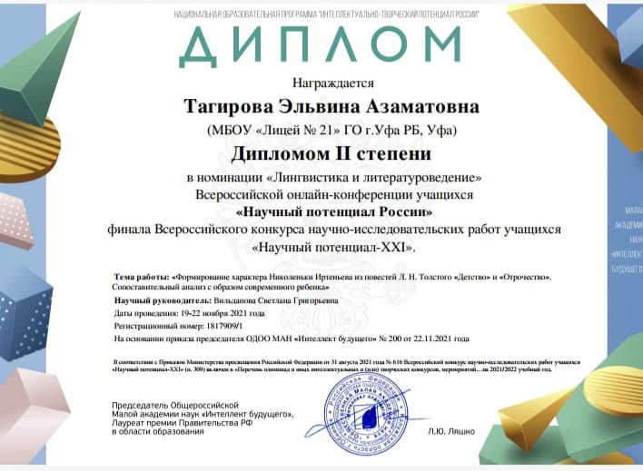 Поздравляем ученицу 6б класса Эльвину Т. и Светлану Григорьевну за 2 место во Всероссийской онлайн-конференции учащихся "Научный потенциал России".