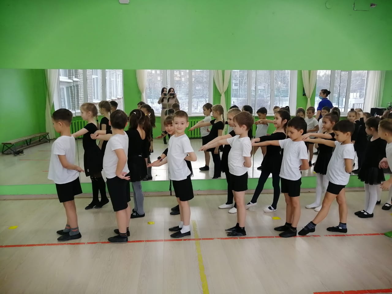 Также на уроках ритмики дети осваивают азы хореографии, учатся танцевать вальс, Полинез, Польку, Бранль, знакомятся с элементами национальных танцев - башкирского, русского, татарского и других национальностей.