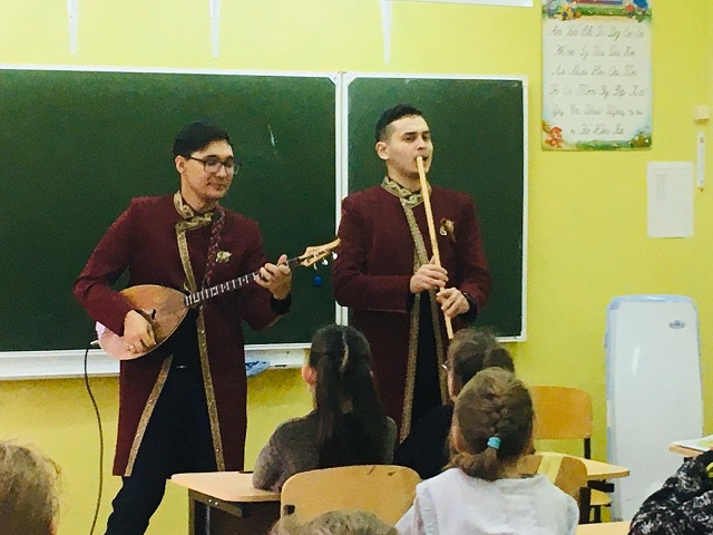 Этно-группа «Йатаган» - лауреаты Всероссийских и международных конкурсов, квартет мультиинструменталистов, коллектив, который ставит задачу - донести духовно-нравственные ценности и мудрость народных песен до современного общества. Квартет в очередной раз выступил в стенах МБОУ «Лицей№21» ГО г.Уфа перед учащимися. Музыканты порадовали своим творчеством, познавательными беседами о традициях башкирского народа, о музыкальных редкостях. Наши ученики узнали о кыл-кубызе и ятагане, который прежде нам никогда не встречались. Музыканты привезли с собой различные инструменты, устроили совместно с детьми импровизированные концерты... Проведенные ими мастер-классы познакомили школьников с азами музыкальной культуры. Учащиеся познакомились со старинными Башкирскими мелодиями, с музыкой народов Мира…