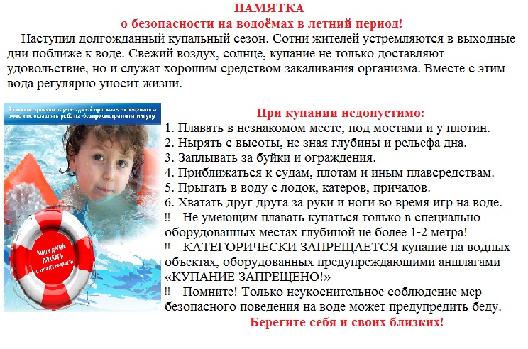 Памятка о безопасности на водоёмах в летний период!