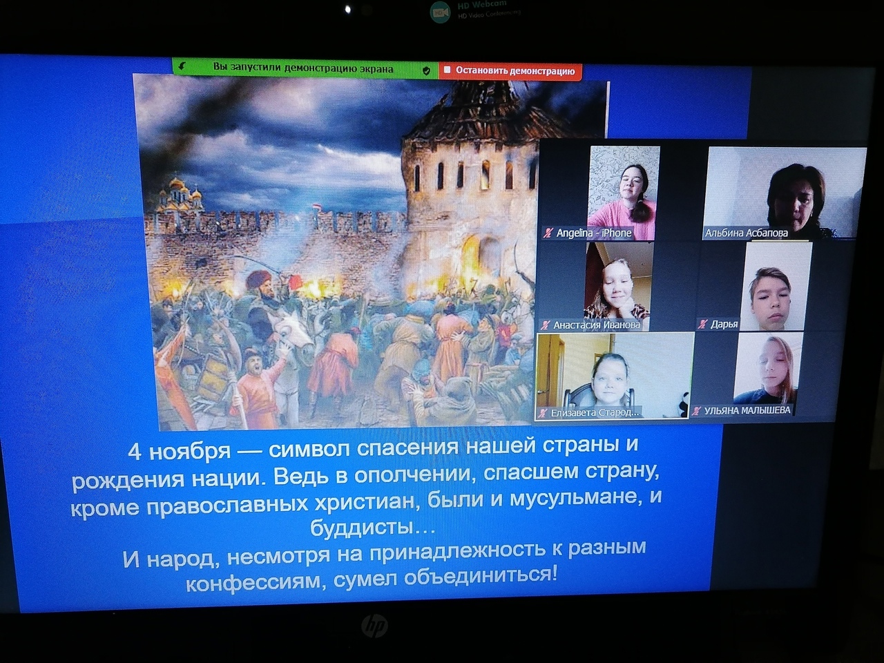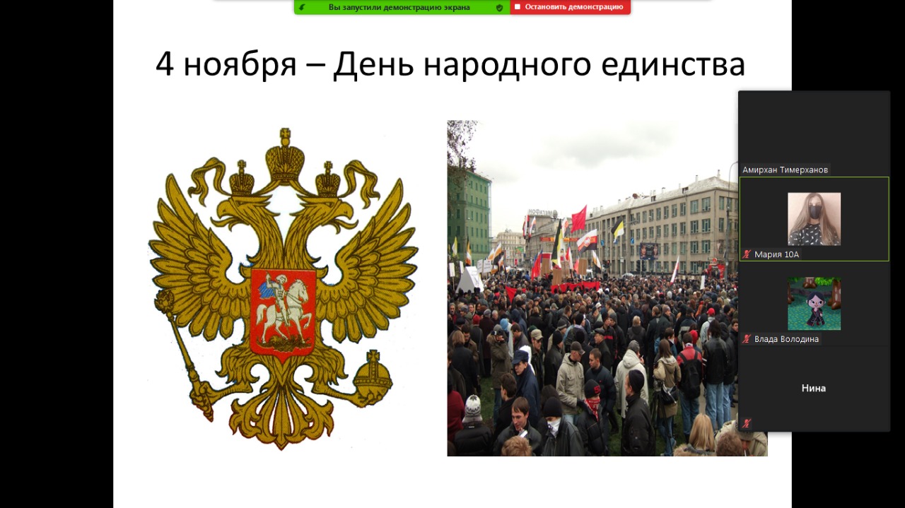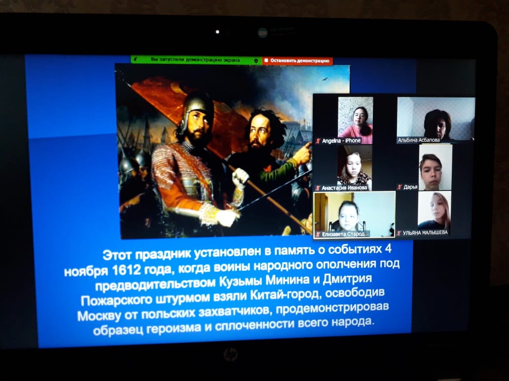 В рамках Всероссийской акции «Россия – наш общий дом», согласно плану воспитательной работы 3, 4 ноября в МБОУ «Лицей №21» городского округа город Уфа прошли классные часы в форме онлайн, посвящённому Дню народного единства. Главной целью уроков стало развитие чувства гражданственности и патриотизма, любовь к Родине, интерес к истории Российского государства; воспитание чувства гордости и уважения к защитникам государства; формирование ответственности за судьбу Родины. На онлайн – уроках, классные руководители рассказали, что праздник единения России установлен в память о событиях 4 ноября 1612 года, когда воины народного ополчения под предводительством Кузьмы Минина и Дмитрия Пожарского штурмом взяли Китай-город, освободив Москву от польских интервентов и продемонстрировав образец героизма и сплочённости всего народа вне зависимости от происхождения, вероисповедания и положения в обществе. Этот праздник связан с окончанием Смутного времени в России в конце 16 начале 17 веков. Классные часы были познавательными, учащимся были показаны интересные презентации. Дети были вовлечены в мероприятие, обучающиеся 5,7 10 – х классов выразительно читали стихотворения о Родине, семье и народе.