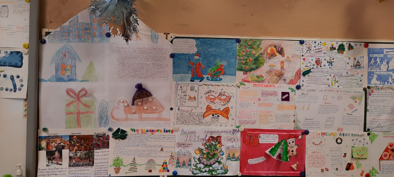 Учащимся 3А и 3В классов было дано коллективное домашнее задание, принять участие в проекте «Энциклопедия Нового года». В ходе его подготовки каждый ученик путем жеребьёвки получил свою индивидуальную тему. Ребятам в ходе небольшого исследования предстояло узнать о Дедушке Морозе и внучке его Снегурочке, где живут, чем занимаются круглый год; какова история и традиции празднования Нового года в России и других странах; кто и когда придумал наряжать именно ёлку, чем её наряжали в старину и чем в наше время; какие ёлочные игрушки можно сделать своими руками; чем можно заменить живую ель и многое-многое другое.