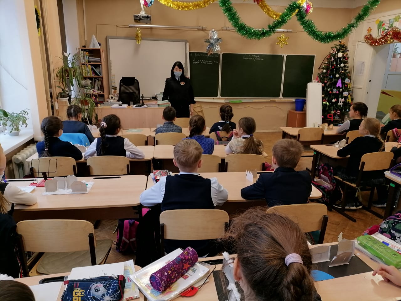 Инспектор рассказал учащимся начальных классов о несчастных случаях, провела беседу по правилам безопасного движения, проверила светоотражающие элементы. Инспектор задавала вопросы, на которые учащиеся давали верные ответы. Особое внимание Энже Ильдаровна акцентировала на том, что необходимо использовать ремни безопасности, светоотражающие элементы, объяснила, что использование наушников с музыкой и мобильного телефона недопустимо при переходе проезжей части дороги.