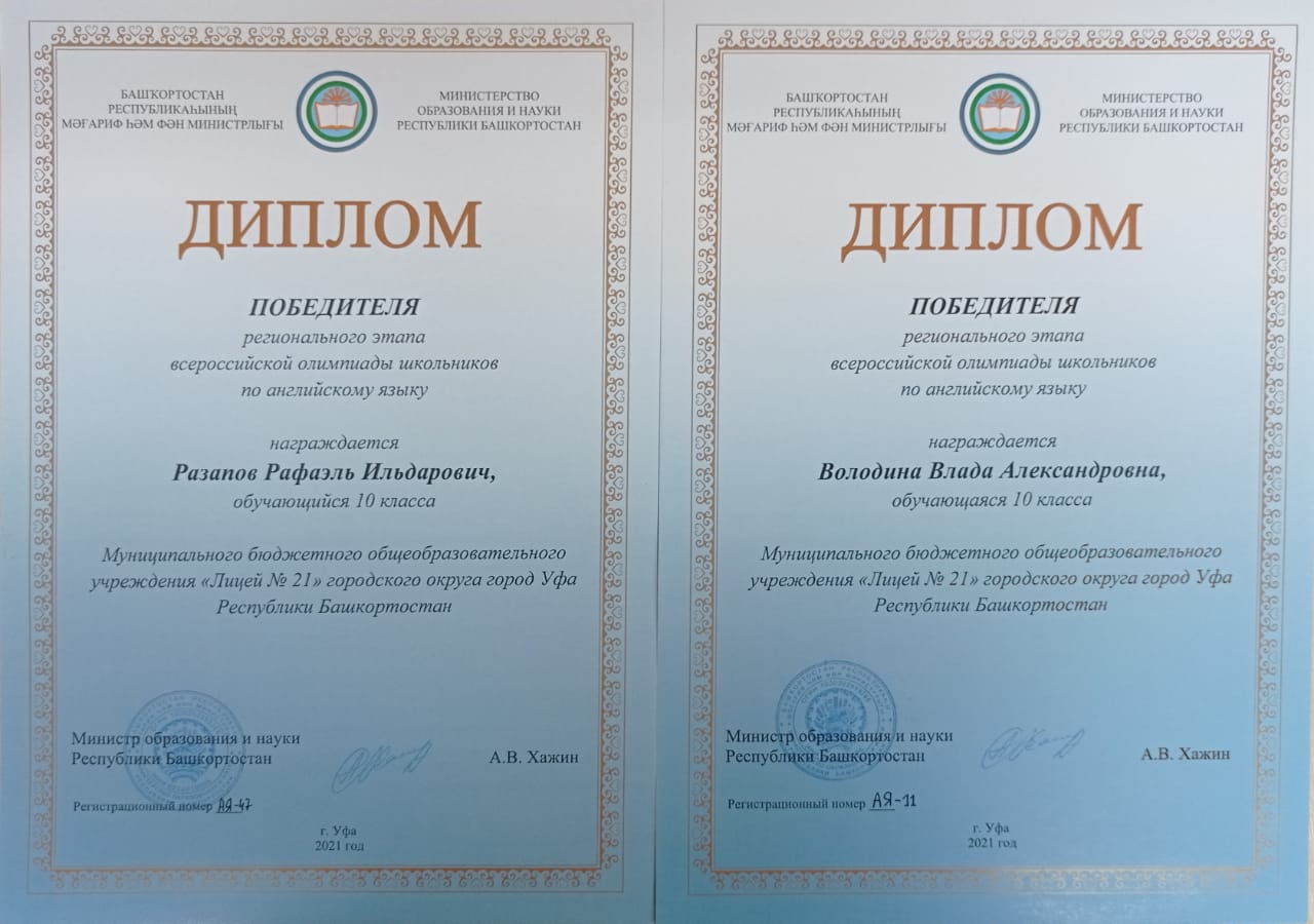 От всей души поздравляем ПОБЕДИТЕЛЕЙ регионального этапа Всероссийской олимпиады школьников по английскому языку: ученицу 10А класса Володину Владу и ученика 10 Б класса Разапова Рафаэля! Молодцы, мы вами гордимся!