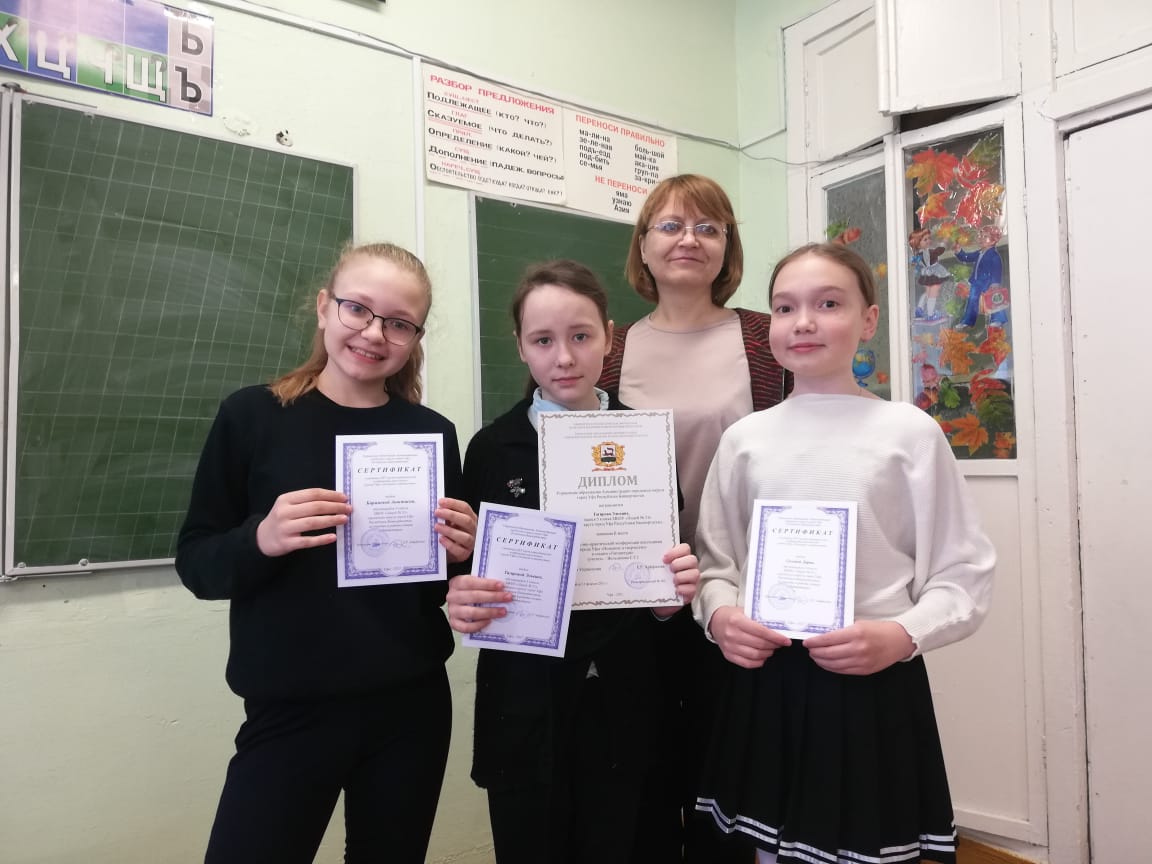 Поздравляем Тагирову Э., ученицу 5б класса, занявшую II место в ХХV научно-практической конференции школьников г. Уфы "Познание и творчество" в секции "Литература", а также учениц 5б класса Каримову А. и Каримову Д., принявших участие в конференции. Желаем творческих успехов и новых побед!