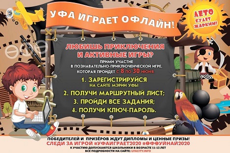 В связи с этим, в целях создания условий для активной деятельности и интеллектуального развития детей будет организована офлайн-игра «Уфа играет 2020», которая реализуется в рамках программы «Уфа любимый город».